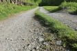 At sharp right just after a barn, carrying up hill on the main track. Field is just past a second barn