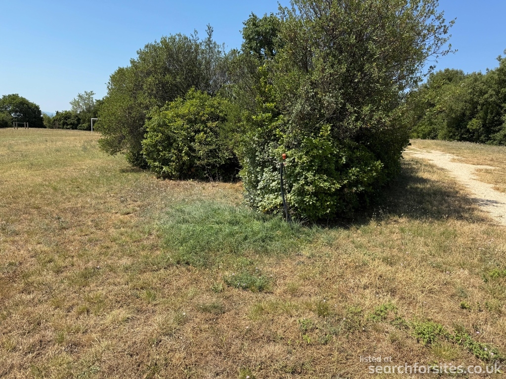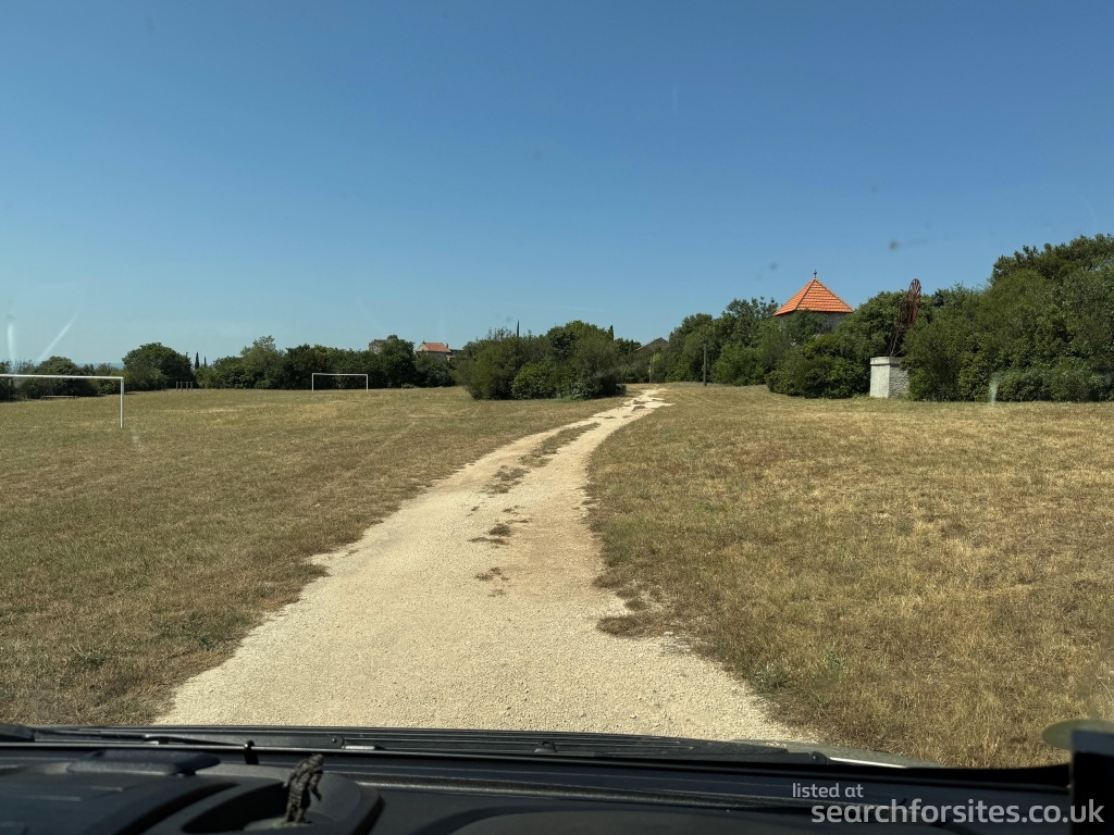 Most of the available parking area has a slope, but there are some flat areas between the two hedges at the highest part of the field.