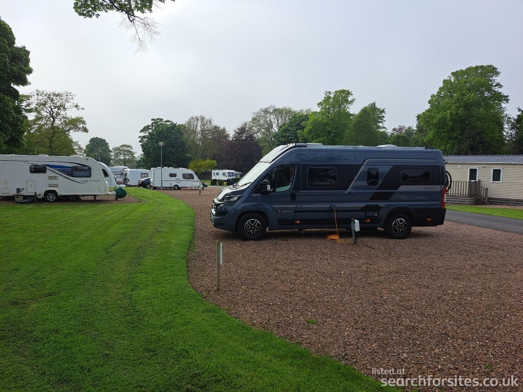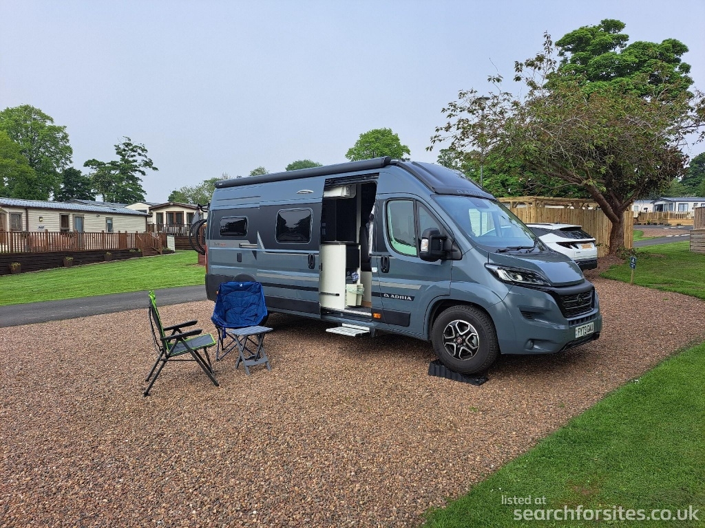 All the touring pitches feature electric hook-ups, with many being full service pitches benefiting from water fill and drain points. The pitches are grouped together in several distinct areas and offered on a choice of either grassed or hardstandings. Some of the pitches have a slope, so it's wise to ask at the time of booking if you need a level pitch.