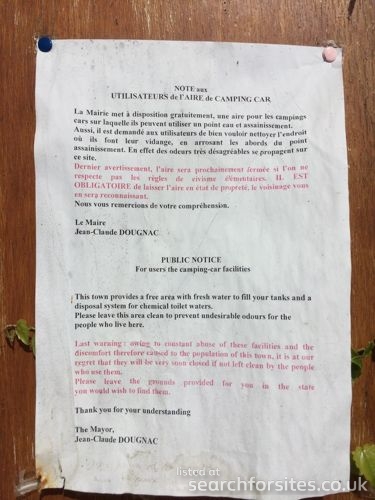 Authorised motorhome service point and night stop