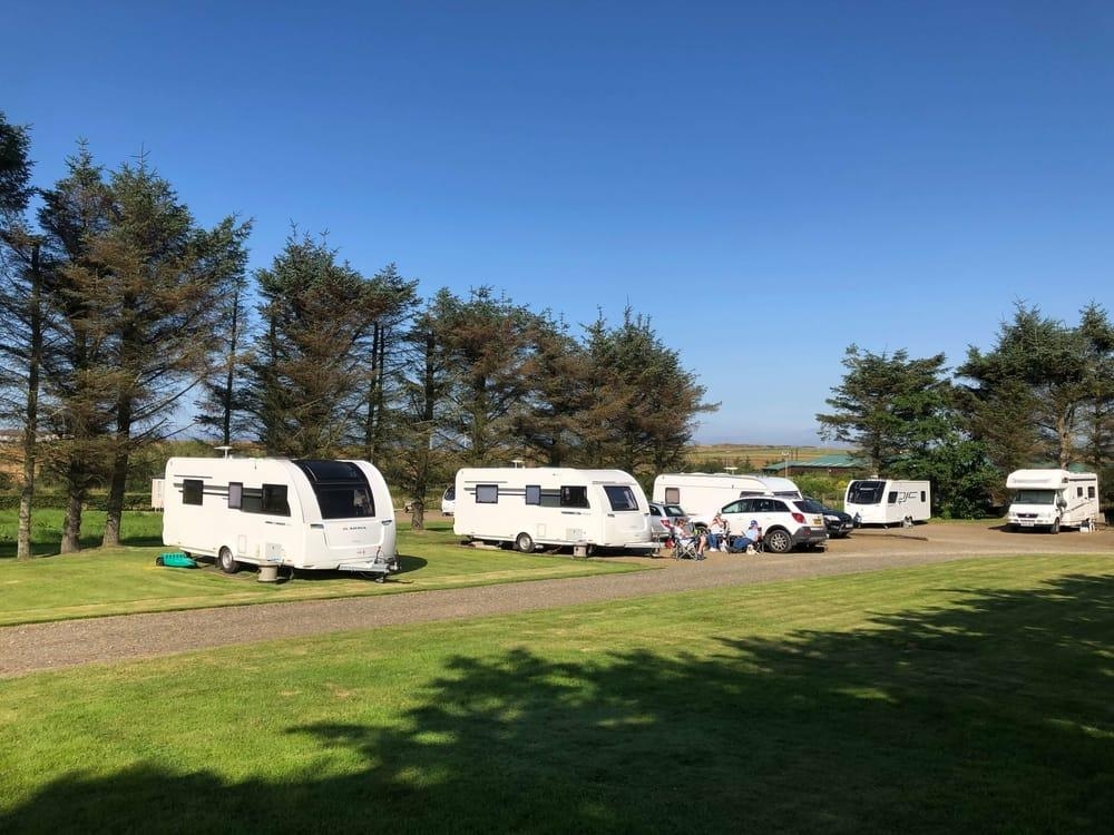 Amenities block, showers, laundry and reception. We have at present 23 newly laid out pitches for touring and motor caravans, all pitches being spacious with either grass or hardstanding available. All our pitches have a 16 amp electric hook-up with the majority having satellite TV-hook up. There are also a number of super pitches with their own water, waste, electric and satellite TV hook ups.