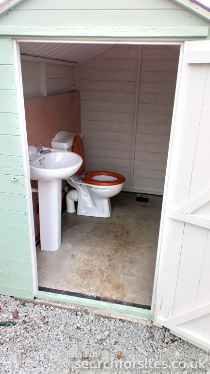Facilities include a flushing toilet, wash basin, chemical waste disposal and drinking water.