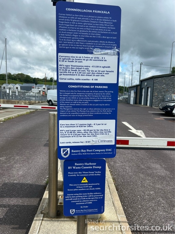 Large vans over 2.7 metres high - €5 per hr for the first 4 hrs, €20 for 24hrs, after the 24hrs stay €5 per 6 hrs thereafter.