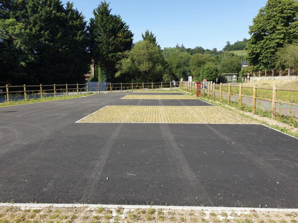 Clearly marked bays surrounded by post & rail fencing.