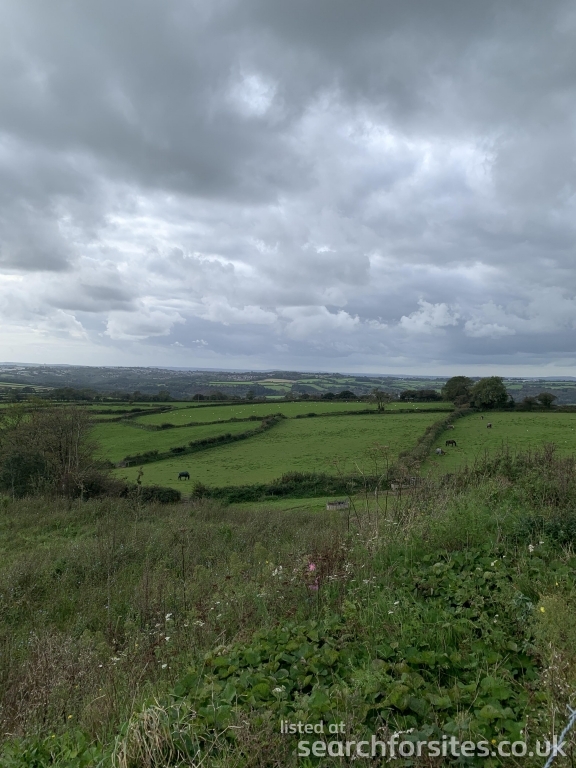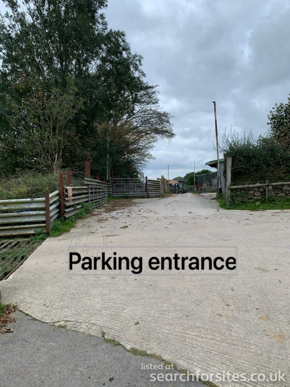 Parking area is on hard standing with views over fields out to sea.
