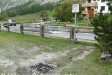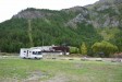 "Health evacuation for motorhome" sign behind the cottage at the entrance on the right